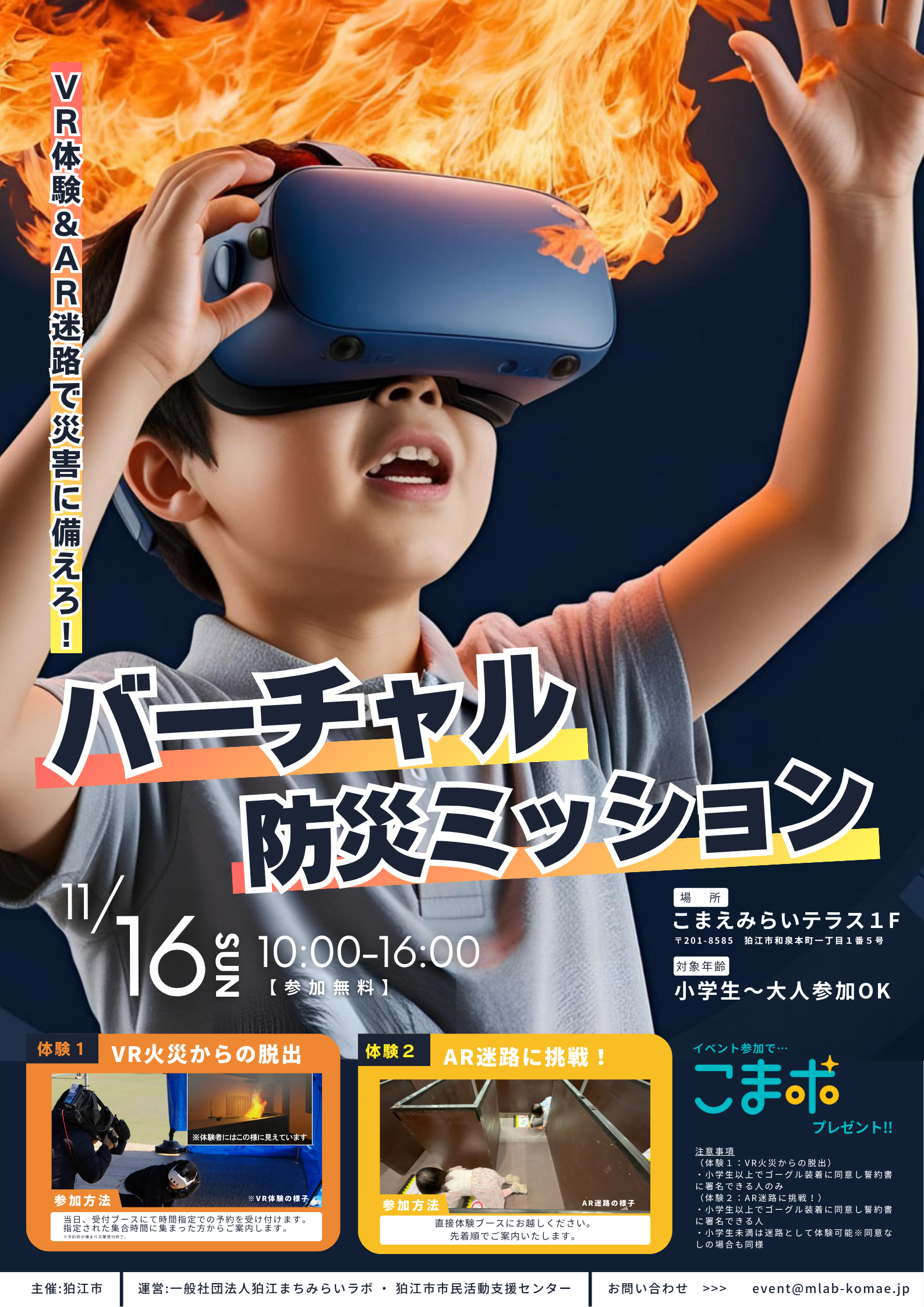 11月16日(日曜日)に「こまえみらいテラス」で防災イベントを行います。