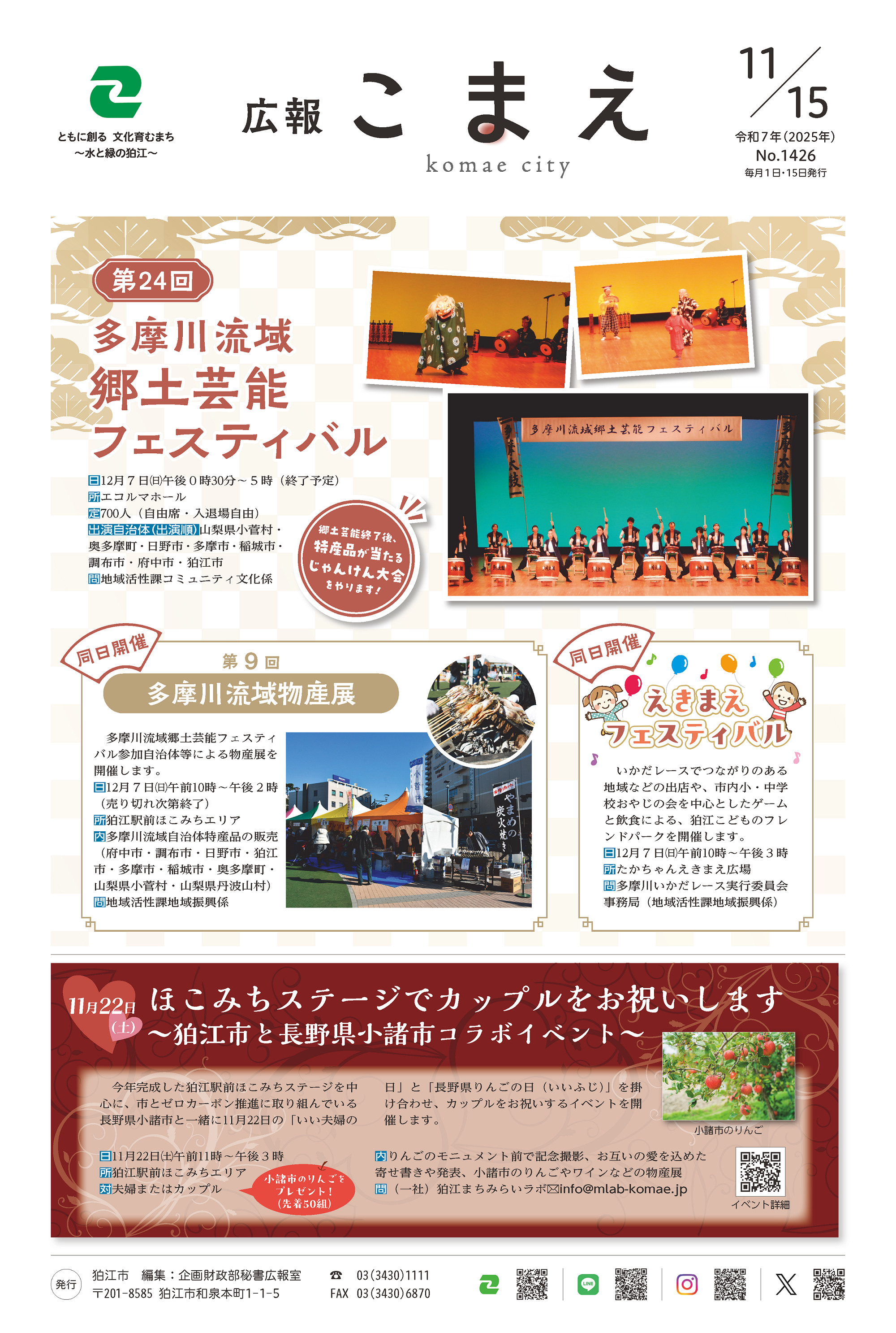 - 11月22日(土)ほこみちステージでカップルをお祝いします~狛江市と長野県小諸市コラボイベント~