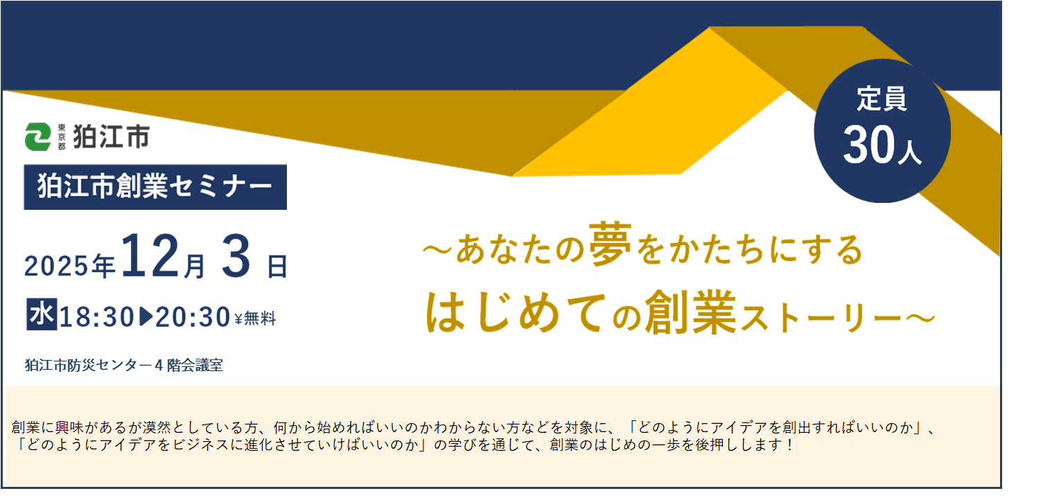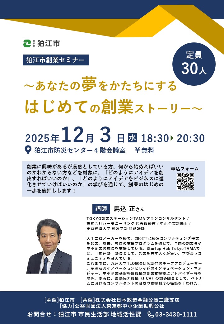 ~あなたの夢をかたちにする はじめての創業ストーリー~(狛江市創業セミナー)