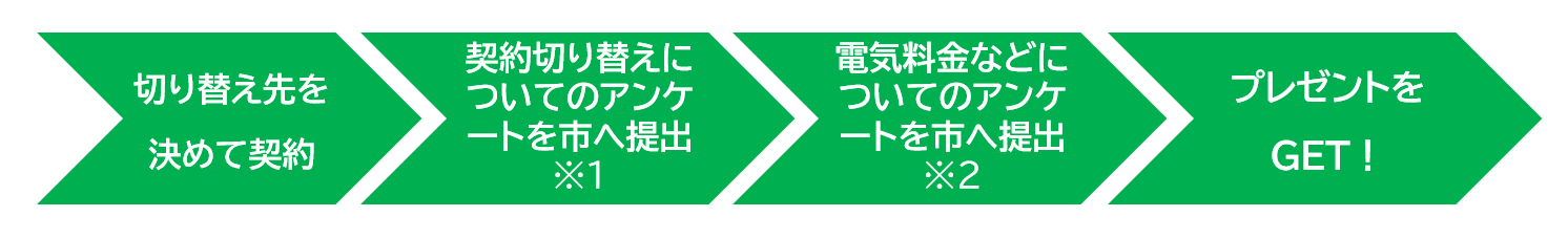 期間中に、ご家庭の電気契約を「再エネ電気プラン」に切り替え、かつ、市のアンケーㇳにご回答いただいた方に、先着で素敵なグッズをプレゼントするキャンペーンです。