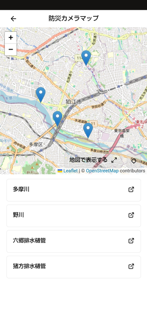 狛江市防災マップ、ハザードマップ、防災ミニアプリ