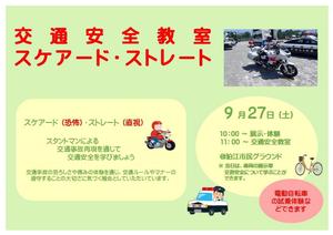 自転車や車に関する事故事例紹介(スタントマンによる実演)、調布警察署による交通ルールの講義のほか、パトカーなどの車両展示や各種交通安全に関する体験ができます。