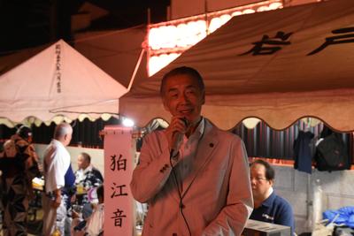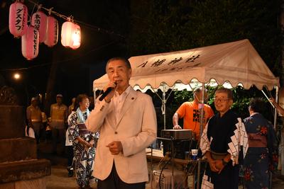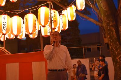 | いずみ会 納涼盆踊り大会での挨拶の様子 |