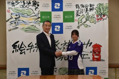 - 表敬訪問(市長公室) スフィーダ世田谷FCユース 中田 希選手